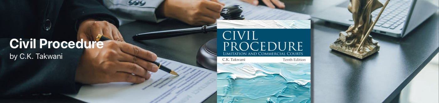 Civil Procedure (CPC) by C.K. Takwani provides an interesting and lucid study of the fundamental principles of civil procedure in a logical sequence. This book explains complex legal concepts with clarity and coherence. It covers all aspects and dimensions of law relating to Civil Procedure and Limitation in India. The topic-wise treatment of the subject, along with references to academic writings and judicial decisions, makes the study of civil procedure more meaningful and comprehensible.